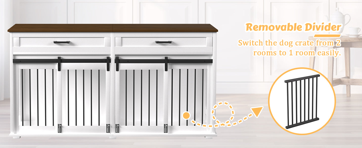 【2-ROOM DESIGN】This dog crate side table has a removable divider in the middle, giving 2 medium to large dogs individual space. Additionally, each of the two rooms is equipped with a metal safety lock, which is sturdy enough to prevent them from running around.