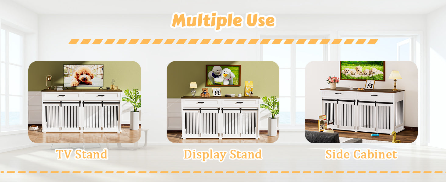 【MULTI-USE DOG CRATE】This furniture-style dog crate can be placed in any corner and combined with any decoration style. It can be used as an end table, TV cabinet, display stand, or plant stand while providing your dogs with a separate room.