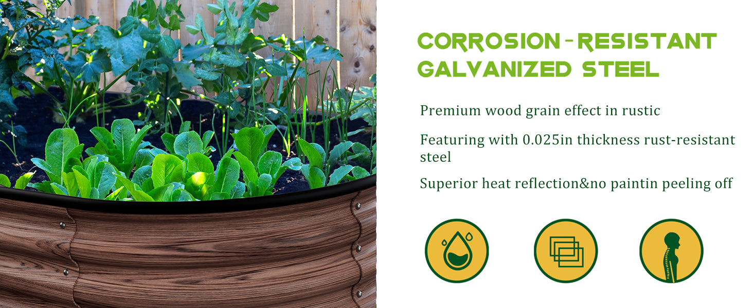 【DURABLE HIGH-QUALITY MATERIAL】This galvanized garden box is made of stainless steel and can be used outdoors for decades. This material is excellent at heat reflection, which can increase the light intensity to allow plants to get more sunlight, and increase the soil temperature to help plants grow better in cold seasons.