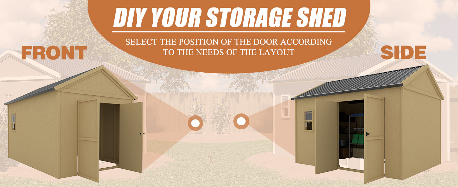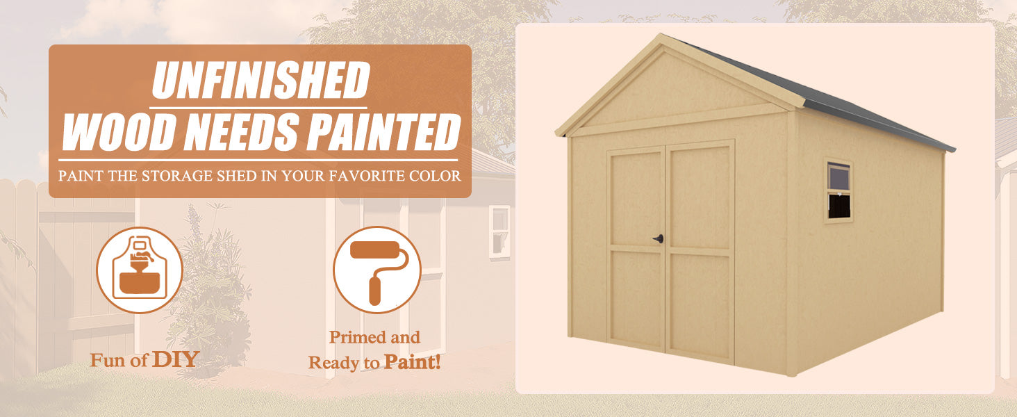 【DIY DESIGN】The wooden structure of this shed allows for personalized DIY designs. You can install this door on the front or side of the shed based on your storage needs. Additionally, The product is in unfinished natural wood color. You have the option to paint it yourself; a protective coating is recommended in your favorite color!