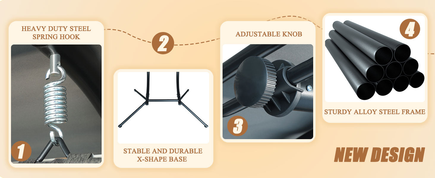 【HEAVY DUTY STRUCTURE】Our 2-person porch swing features a heavy-duty steel frame that can bear up to 551lbs. The metal frame is coated with a gray coating to avoid problems such as rust and cracking. Very luxurious and beautiful. The triangular support at the bottom is more stable to ensure safety.