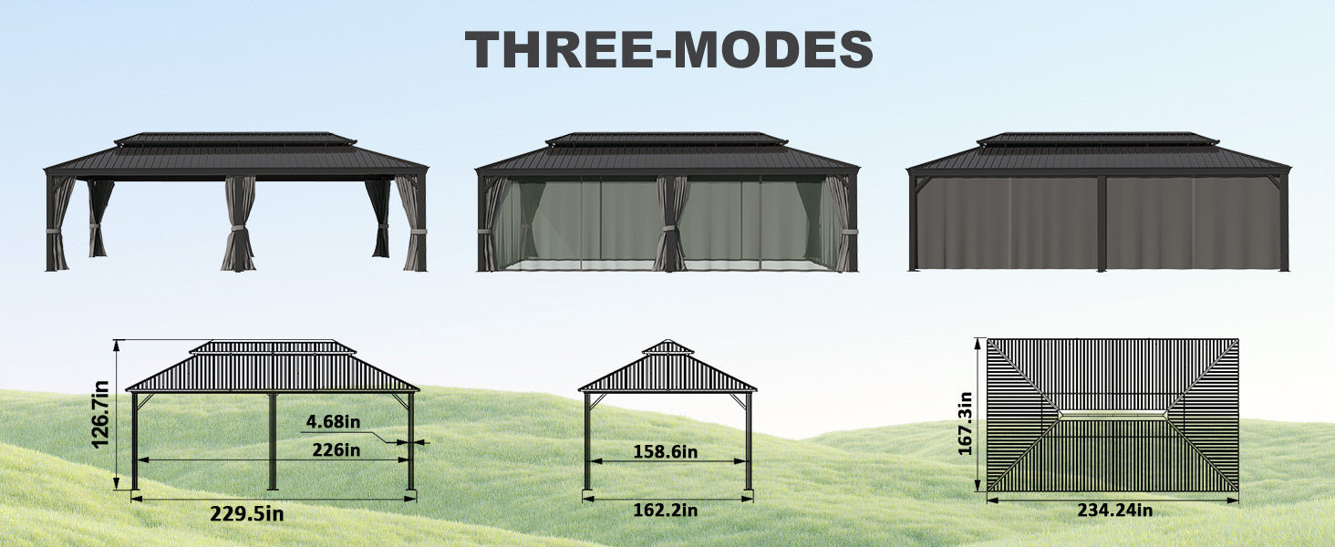 【DIMENSIONS AND INSTALLATION】The dimensions of this 14' x 20' metal roof gazebo: 19.13' L x 13.52' W x 10.56' H. Installing a heavy duty gazebo is not easy, so we provide you with manual and installation video. You simply enjoy various activities such as parties, breaks, and more in our outdoor gazebo.